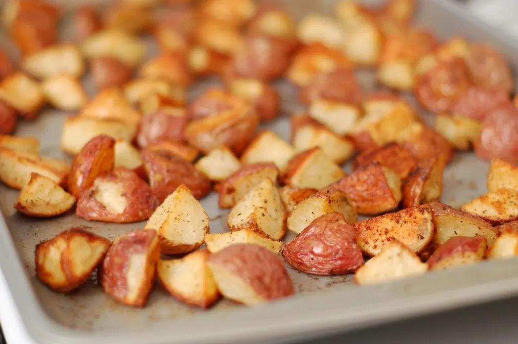 - 1 1/2 lbs baby red potatoes, washed, cubed, and patted dry