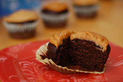 I’ve been wanting to try out this recipe for awhile and today is the perfect excuse! These cupcakes are made with non-fat yogurt and whole wheat flour making it possible to “indulge” without feeling guilty! So enjoy some Chocolate Graham Cupcakes with Honey-Drizzled Peanut Butter Frosting! 🙂
