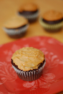 Chocolate-Graham Cupcakes with Honey-Drizzled Peanut Butter FrostingPin It